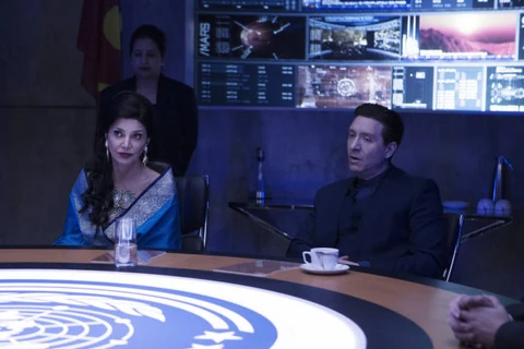 In "Cascade", Avasarala's suspicions about Errinwright's role in the larger protomolecule conspiracy are confirmed. She finally confronts him about the staged suicide of her old friend Franklin DeGraaf. Hopeful that Errinwright can yet redeem himself, she decides not to go public with his role in the conspiracy just yet. Avasarala is still not convinced of Bobbie’s testimony and her claim that her unit was responsible for the incident on Ganymede. The MCR appears to be using the peace talks as a smokescreen for some ulterior purposes. Avasarala knows she needs to get more information from Bobbie. She finds Bobbie getting her first look at the ocean and tries to derive the truth from her, but Bobbie is still reeling from her experience at the UN.