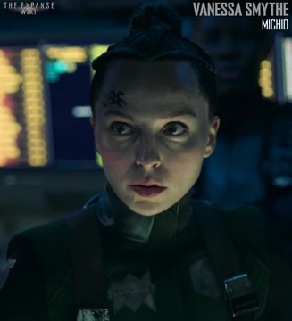 In "Ankawala", Micio informs Josep that Camina has kept many video messages from Naomi on her hand terminal and no messages from their family, proving that she cares more about Naomi than the rest of them. Michio does tell him she put back the hand terminal but Josep then tells her everyone has their own perosnal things they are torn on. Michio is then conforted by Josep over her soon to be departure.