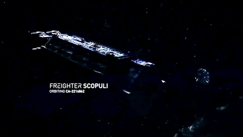 Julie, on the Scopuli's bridge, soon detected the Anubis burning past right on schedule but noted that something was off. However, she okayed the assault, readying boarding parties, and Scopuli broke cover to pursue the passing ship. As the freighter closed to board the Anubis, however, it turned and revealed itself to not be an unarmed civilian science vessel as expected, but a fully armed stealth gunship.